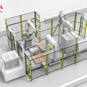 Zrobotyzowana stacja paletyzująca w wykonaniu „Zaawansowana paletyzacja” to kompleksowe i nowoczesne rozwiązanie dedykowane firmom, które potrzebują nie tylko efektywnego układania produktów na paletach, ale także ich profesjonalnego zabezpieczenia przed transportem i magazynowaniem. System ten integruje paletyzację z automatyczną lub półautomatyczną owijarką – dostępną w wersji talerzowej lub ramiennej – oraz kapturownicą, co pozwala na pełną automatyzację procesu przygotowania ładunku do wysyłki.